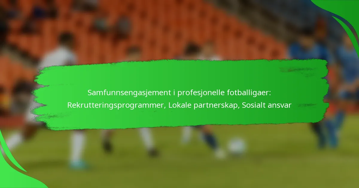 Sosialt ansvar i profesjonelle fotballigaer involverer initiativer som har en positiv innvirkning på samfunnene, fremmer mangfold og tar tak i presserende sosiale spørsmål. Disse innsatsene forbedrer ikke bare ligaenes omdømme, men fremmer også en sterkere forbindelse med fans og lokale samfunn.