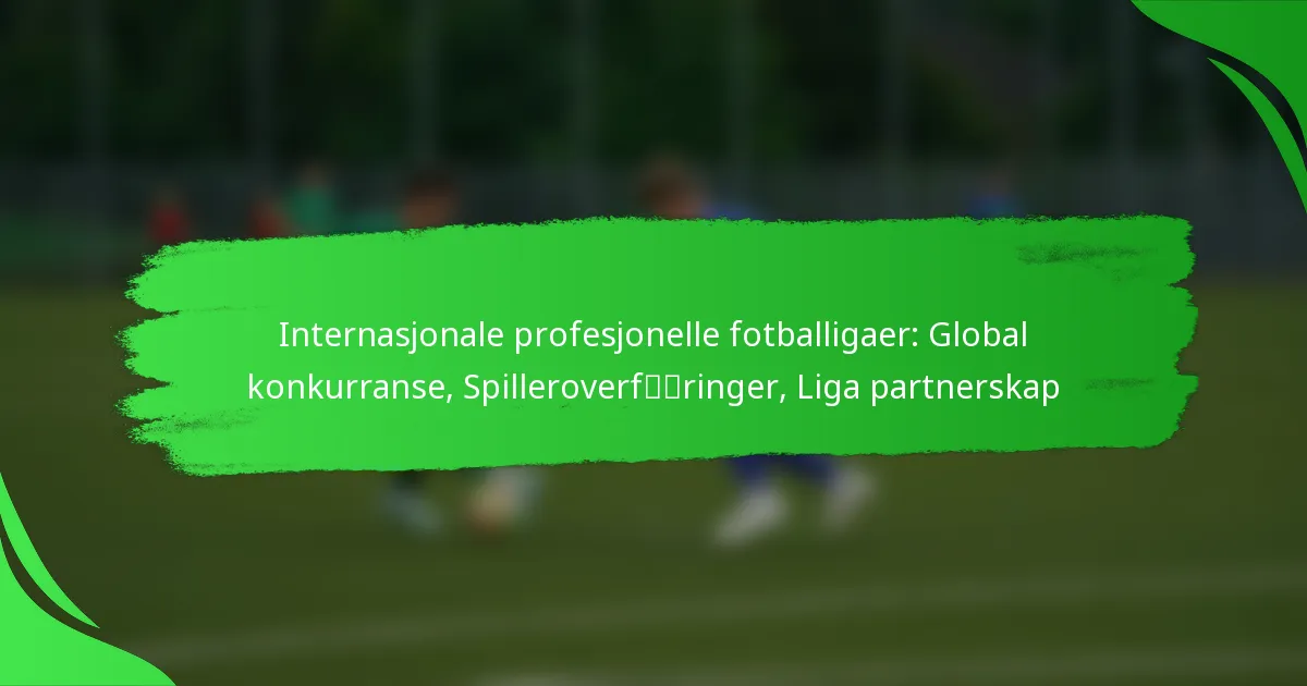 Internasjonale profesjonelle fotballigaer legger til rette for grensekryssende konkurranse, noe som gjør det mulig for klubber fra forskjellige land å konkurrere og engasjere seg i spilleroverganger. Disse ligaene forbedrer ikke bare synligheten og inntektene gjennom globale konkurranser, men påvirker også spillerprestasjoner og karriereveier. De intrikate dynamikkene i spilleroverganger, regulert av forskrifter og økonomiske faktorer, spiller en avgjørende rolle i å forme landskapet for internasjonal fotball.