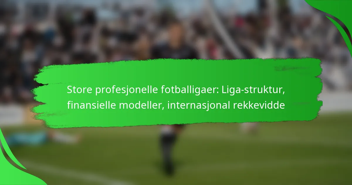 Store profesjonelle fotballigaer er preget av strukturerte formater som involverer et fast antall lag som konkurrerer i kamper, noe som ofte fører til sluttspill eller mesterskap. De økonomiske modellene til disse ligaene varierer mye, påvirket av inntektskilder og spillerkompensasjon, som er essensielle for interessenter å forstå. I tillegg har disse ligaene en betydelig internasjonal rekkevidde, og engasjerer millioner av fans globalt og utnytter lukrative kringkastingsavtaler for å forbedre merkevaren og inntektsmulighetene sine.