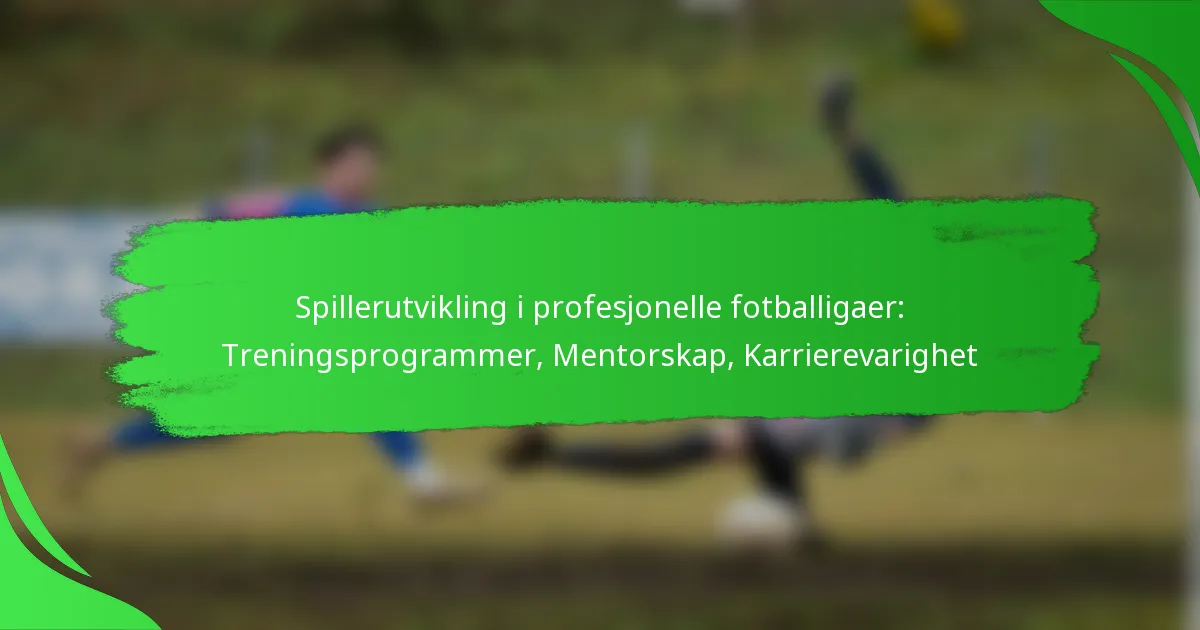 Utvikling av spillere i profesjonelle fotballigaer er en flerfasettert prosess som omfatter spesialiserte treningsprogrammer rettet mot å forbedre tekniske ferdigheter, taktisk bevissthet og fysisk form. Sentral i denne utviklingen er mentorskapsordninger, som gir unge idrettsutøvere verdifull veiledning fra erfarne spillere, og fremmer både ferdighetsutvikling og emosjonell motstandskraft. I tillegg er strategier fokusert på skadeforebygging og ressurser for mental helse avgjørende for å sikre karrierelengde, slik at spillerne kan opprettholde topp ytelse gjennom hele sin profesjonelle reise.
